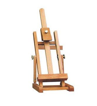 Chevalet de bureau en bois très compact, à lattes transversales. C’est un chevalet adapté pour travailler avec de petites toiles. Il est muni d’un stoppeur pour la toile afin d’améliorer la stabilité.