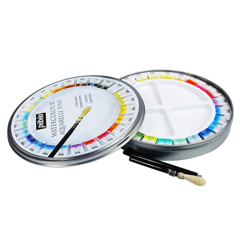 Coffret métal 24 demi godets d’Aquarelle fine – Pébéo